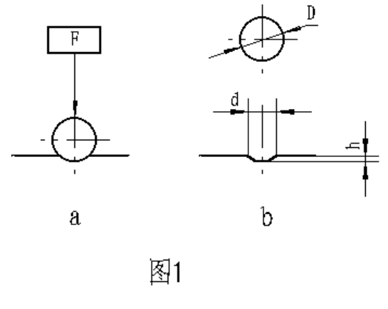 金屬布氏硬度試驗系采用一定直徑硬質合金球,以規定試驗力壓入被測材料表面(圖1a)按規定保持時間后,卸除試驗力,(圖1b)測量試樣表面的壓痕直徑,以計算出布氏硬度,并以下式計算之: